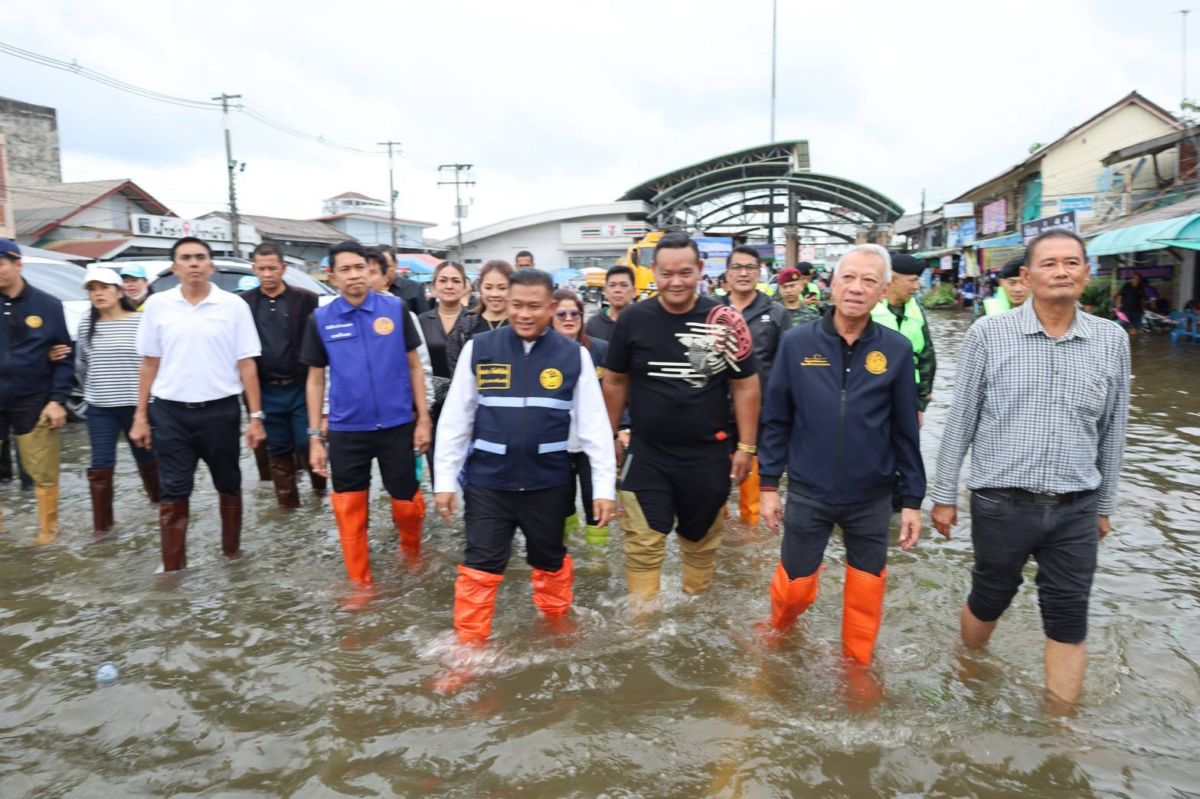 เกาะติดสถานการณ์น้ำท่วม จุดที่ (3) นายพิพัฒน์ รัชกิจประการ รองนายกรัฐมนตรีและรัฐมนตรีว่าการกระทรวงคมนาคม ลงพื้นที่ติดตามสถานการณ์อุทกภัยและเปิดครัวชุมชนเพื่อบรรเทาความเดือดร้อน แจกจ่ายอาหารให้แก่ประชาชนในพื้นที่