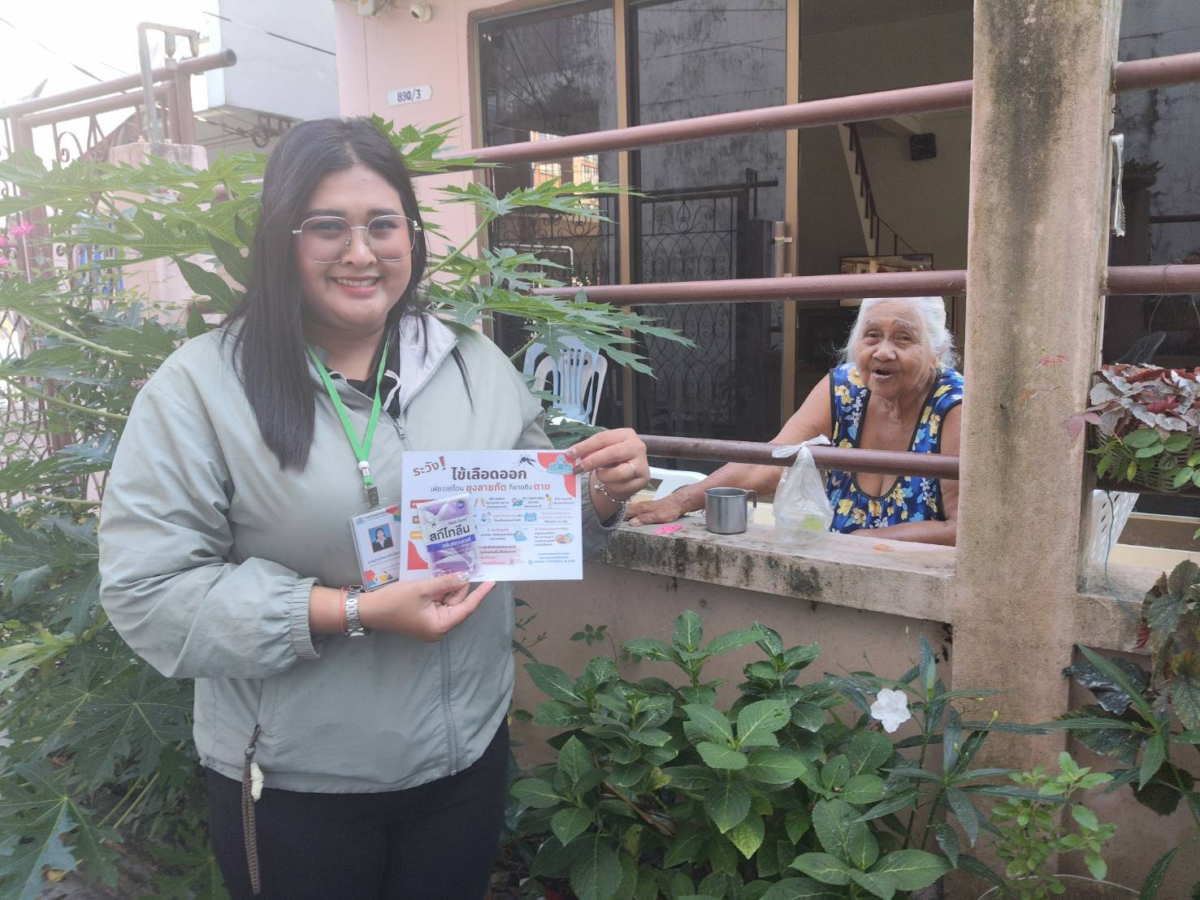 ดำเนินการลงพื้นที่รณรงค์ ให้คำแนะนำ พร้อมมอบผลิตภัณฑ์ในการเฝ้าระวัง ป้องกันและควบคุมโรค สำรวจและทำลายแหล่งเพาะพันธุ์ยุงในพื้นที่